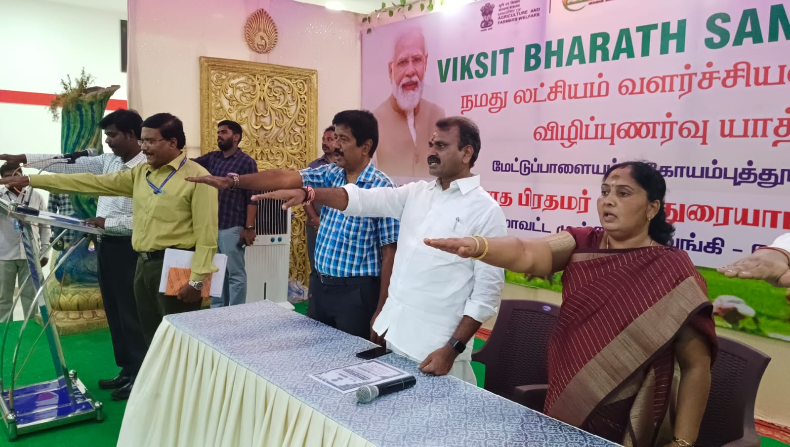இந்நிகழ்வில் பயனாளிகள் மற்றும் பொதுமக்களோடு சேர்ந்து மத்திய இணையமைச்சர், வளர்ச்சியடைந்த பாரதத்திற்கான உறுதி மொழியை ஏற்றுக்கொண்டார்.