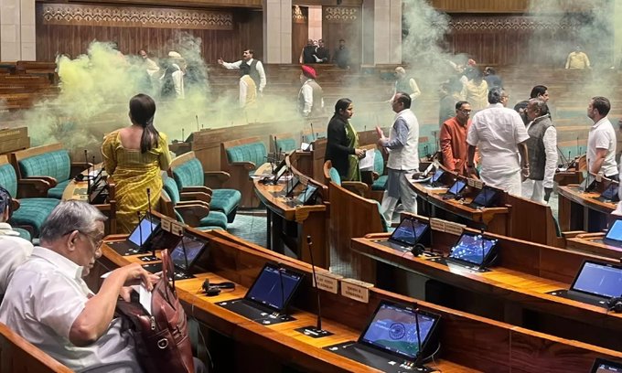 மக்களவையில் நண்பகல் ஒரு மணியளவில் பார்வையாளர் மாடத்திலிருந்து அவைக்குள்ளே 10-12 அடி உயரத்திலிருந்து தாவி குதித்த இளைஞர்கள், ‘தானா சாஹி நைச் சலேகா’ என்று ஆவேசமாகக் கூச்சலிட்டனர். ‘சர்வாதிகாரத்தை ஏற்க இயலாது’ என்பதே அவர்களின் முழக்கம்.