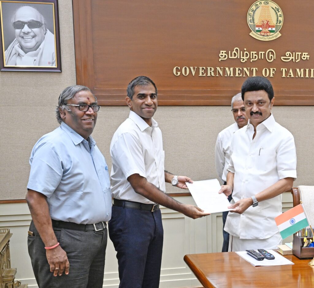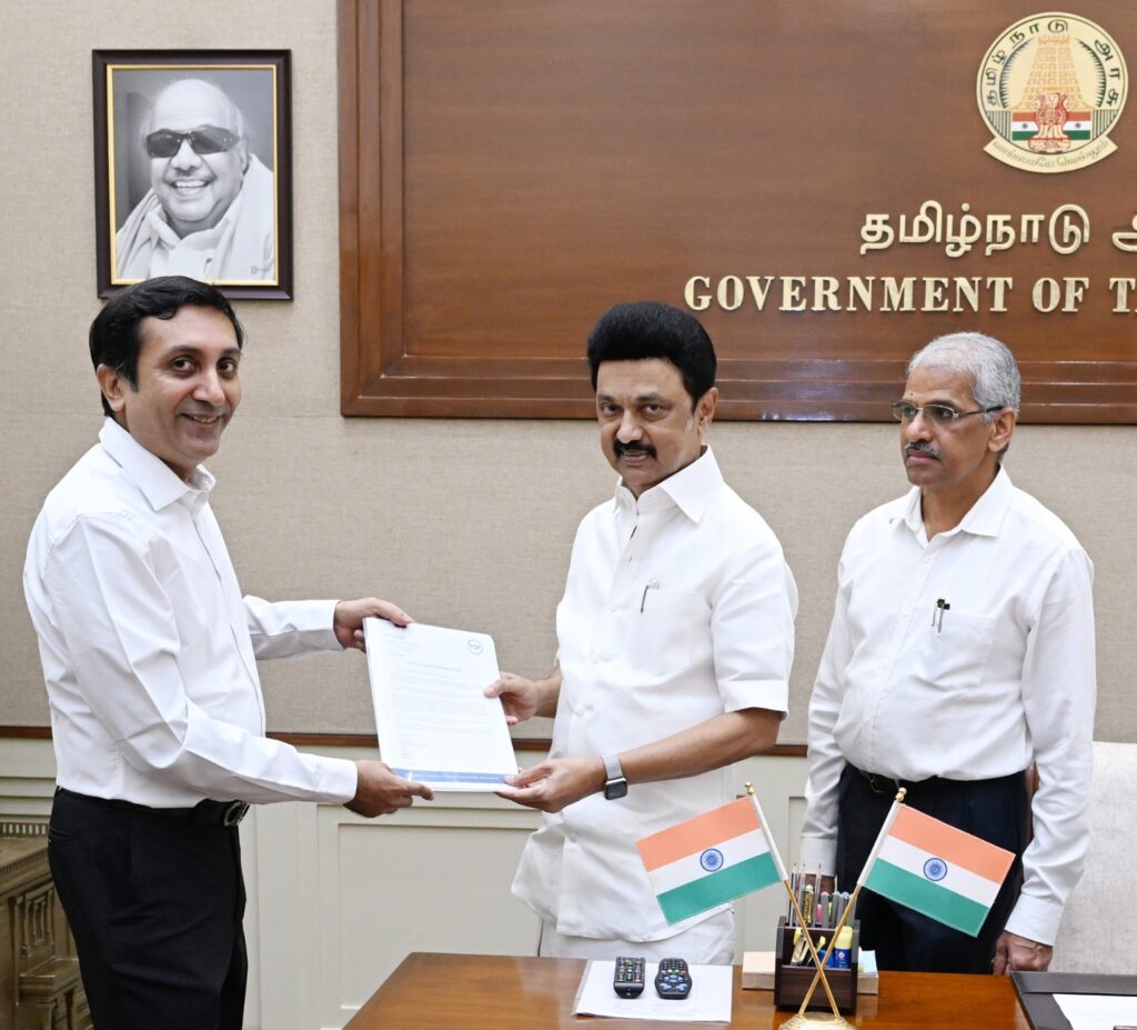 TSF குழுமத்தின் இயக்குநர் திரு. ஸ்ரீவட்ஸ் ராம் அவர்கள் சந்தித்து, மிக்ஜாம் புயல் பேரிடர் நிவாரணப் பணிகளுக்காக முதலமைச்சரின் பொது நிவாரண நிதிக்கு 2 கோடி ரூபாய்க்கான காசோலையை வழங்கினார்.