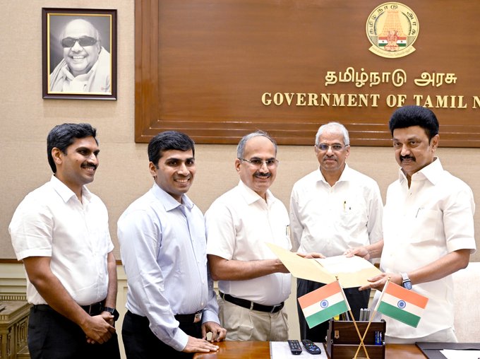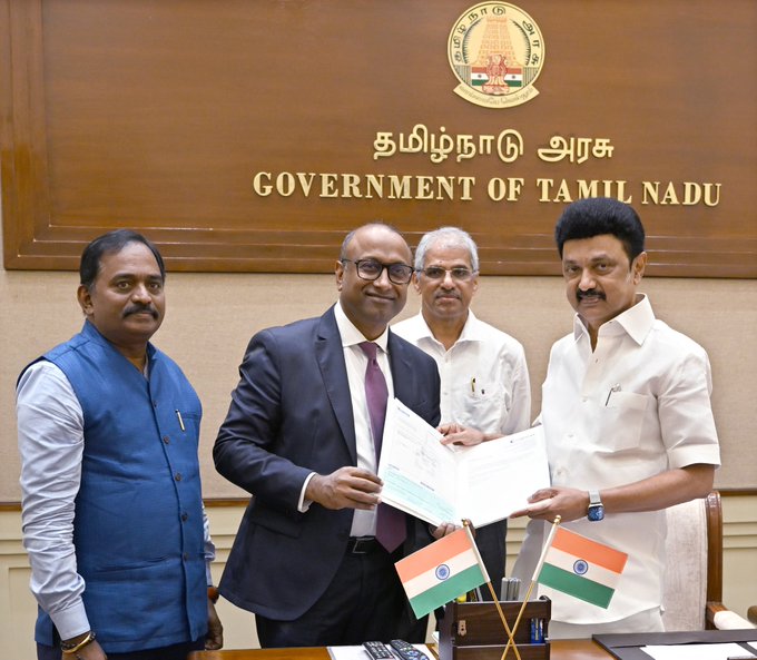 இந்தியா லிமிடெட் நிறுவனத்தின் தலைவர் மற்றும் நிர்வாக இயக்குநர் திரு. ராஜேஷ் நம்பியார் அவர்கள் முதலமைச்சர் மு.க.ஸ்டாலின் அவர்களை சந்தித்து, மிக்ஜாம் புயல் பேரிடர் நிவாரணப் பணிகளுக்காக முதலமைச்சரின் பொது நிவாரண நிதிக்கு ரூ. 3 கோடிக்கான காசோலையை வழங்கினார்.