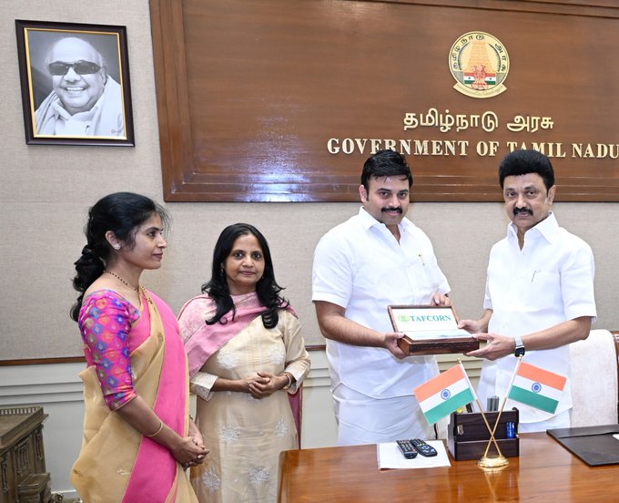தமிழ்நாடு வனத்தோட்டக் கழகத்தின் 2022-23ஆம் நிதியாண்டிற்கான தமிழ்நாடு அரசின் பங்கு ஈவுத்தொகையாக 17 கோடியே 73 இலட்சத்து 86 ஆயிரத்து 921 ரூபாய்க்கான வங்கி வரைவோலையை அமைச்சர் மருத்துவர் மதிவாணன் அவர்கள் முதலமைச்சர் மு.க.ஸ்டாலின் அவர்களிடம் வழங்கினார்.