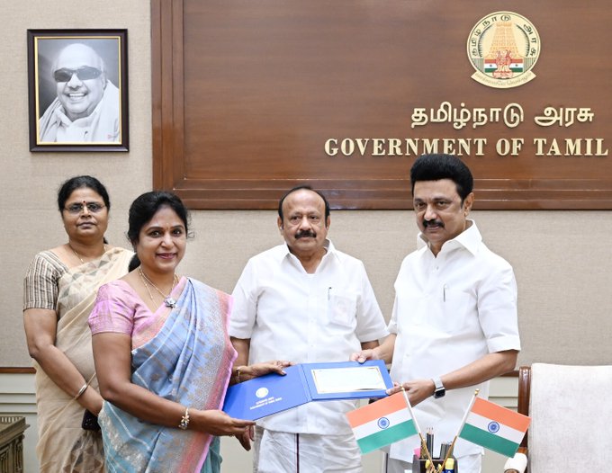 மாண்புமிகு அமைச்சர் திரு. @MRKPanneer அவர்கள் மாண்புமிகு முதலமைச்சர் திரு. @mkstalin அவர்களை சந்தித்து, மிக்ஜாம் புயல் பேரிடர் நிவாரணப் பணிகளுக்காக முதலமைச்சரின் பொது நிவாரண நிதிக்கு தமிழ்நாடு வேளாண்மைப் பல்கலைக்கழக பணியாளர்களின் ஒருநாள் சம்பளத் தொகையான ஒரு கோடியே ஒரு இலட்சம் ரூபாய்க்கான காசோலையை வழங்கினார்.