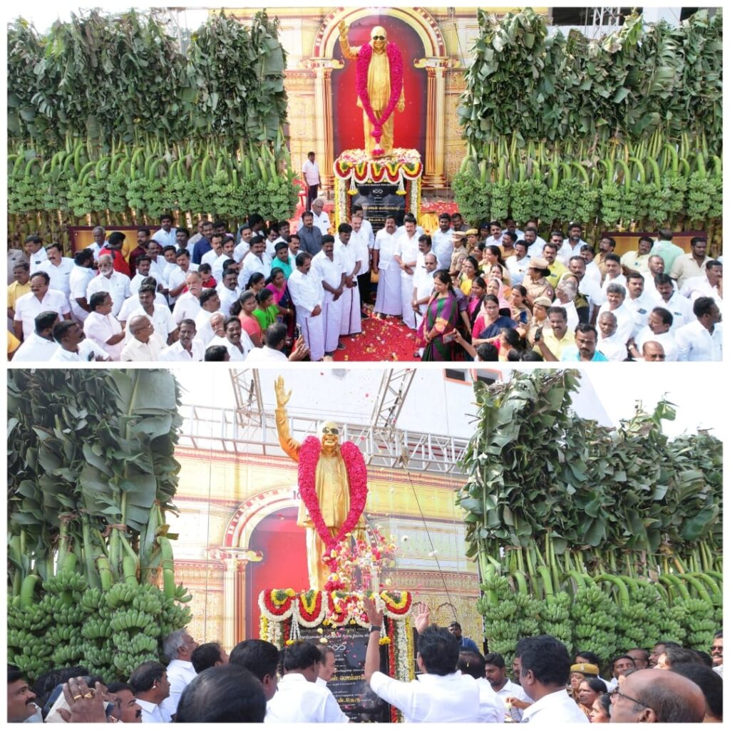 கலைஞர் நூற்றாண்டு விழாவை முன்னிட்டு நிறுவப்பட்ட முத்தமிழ் அறிஞர் கலைஞர் அவர்களின் சிலையை, மொழிப்போர் தியாகிகள் தினமான இன்று திமுக இளைஞர் அணி செயலாளர்-அமைச்சர் உதயநிதி ஸ்டாலின் அவர்கள் காணொலிக் காட்சி வாயிலாக திறந்துவைத்து மொழிப்போர் தியாகிகளுக்கு வீரவணக்கம் செலுத்தினார்.