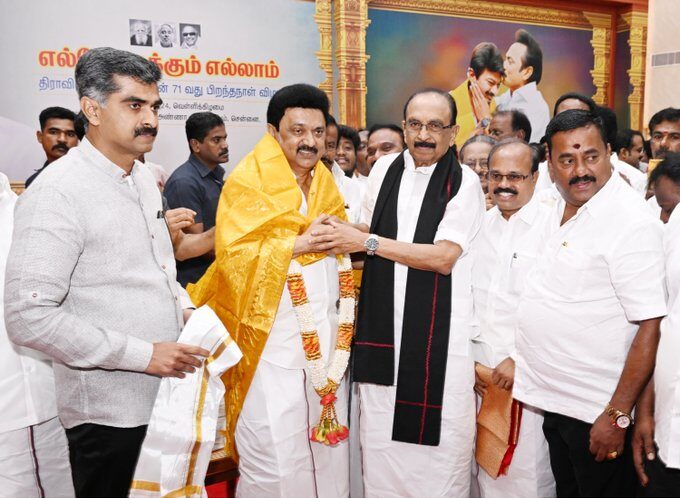 முதலமைச்சர் மு.க.ஸ்டாலின் அவர்களுக்கு, இனிய பிறந்தநாள் வாழ்த்துக்களைத் தெரிவித்துக் கொள்கிறேன். மு.க.ஸ்டாலின் அவர்கள், நல்ல உடல்நலத்துடன், நீண்ட ஆயுளுடன் மக்கள் பணி தொடர இறைவனை வேண்டிக் கொள்கிறேன்.