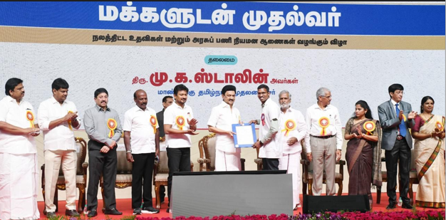 “மக்களுடன் முதல்வர்” திட்டப் பயனாளிகளுக்காக நலத்திட்ட உதவிகள் மற்றும் பணி நியமன ஆணைகள் வழங்கும் விழாவில் கலந்து கொண்டு சிறப்பித்துக் கொண்டிருக்கக்கூடிய
